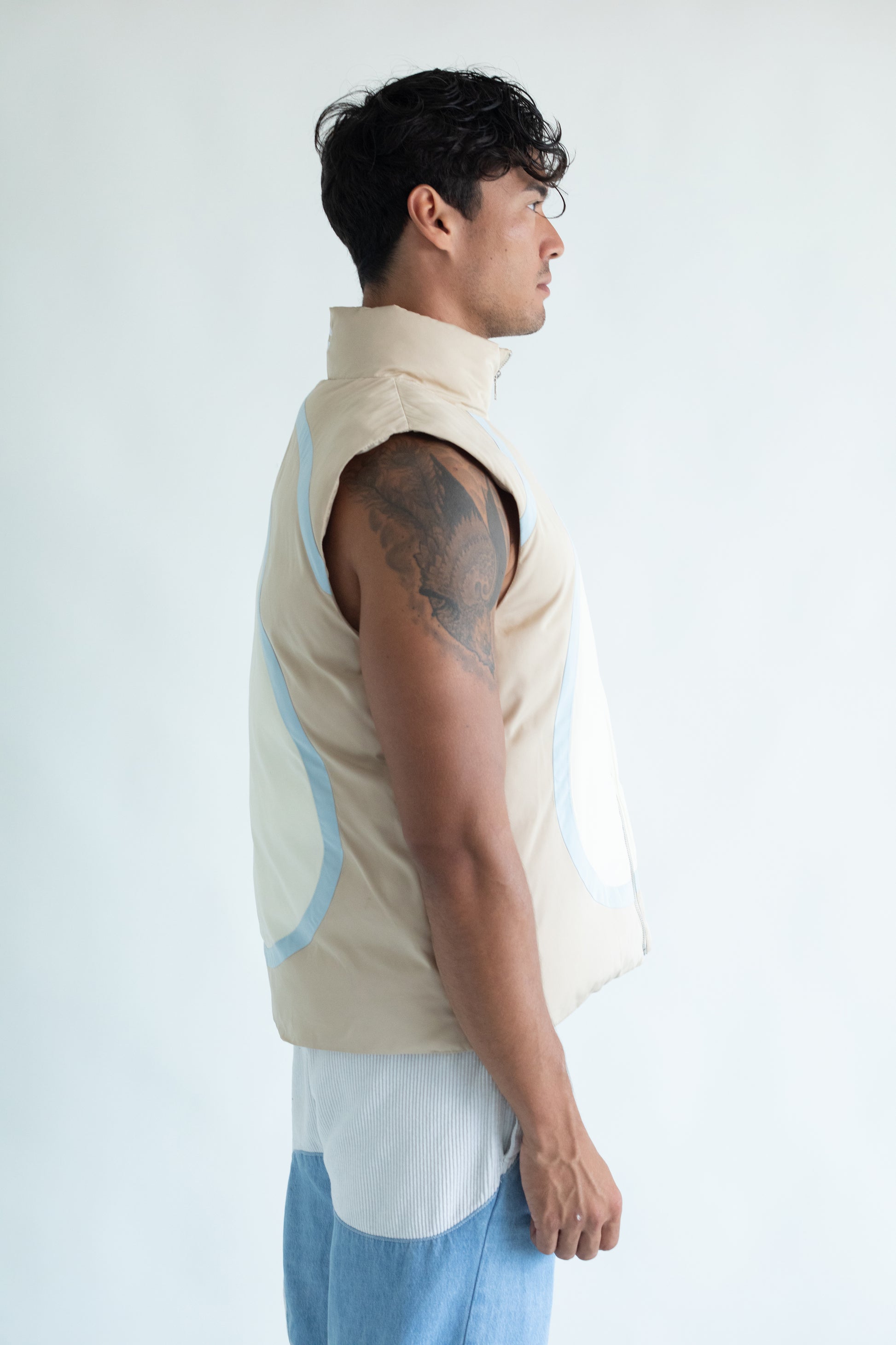 Die Reincarnation Puffervest ist ein integraler Bestandteil einer Kollektion, die von der zeitlosen Philosophie des Perennialismus inspiriert wurde. Diese Kollektion verbindet Mode und tiefgründige Weisheiten, um nicht nur ästhetisch ansprechende, sondern auch bedeutungsvolle Stücke zu schaffen. Die Reincarnation Puffervest symbolisiert den Kreislauf des Lebens und die kontinuierliche Wiedergeburt von Ideen, Identitäten und dem Selbst. Sie steht für Transformation und die Erneuerung des Geistes, während sie gleichzeitig Schutz und Wärme bietet.